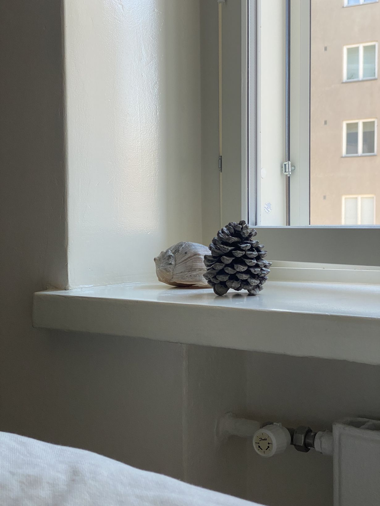 Lissabonista vuonna 2020 Suomeen repussa kuljetettu suuri käpy tuo kaupunkikotiin muiston luonnosta ja seikkailusta ulkona. Löysin kävyn kävellessäni ystävieni kanssa Monsanton metsäpuistossa, ja ihastuin.