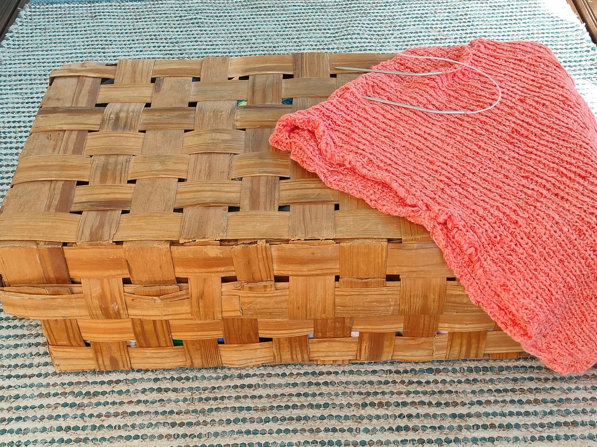 Ukkini oli taitava pärekorien tekijä. Tämä yli 70-vuotias kori kätkee sisäänsä lankakerä ja keskeneräiset neuleeni.