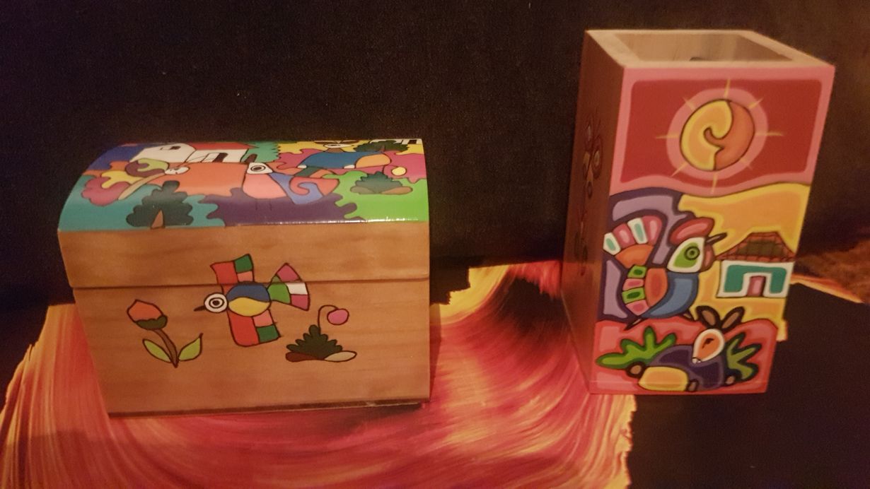 El Salvadorilaisen Christian Chavarrian taidetta. Pakolaisleirin ja muutaman vuoden Ruotsissa asumisen jälkeen Christian pääsi takaisin kotimaahansa, perusti työpajan ja menestyy hyvin. Hänen maalaamiaan ristejä myytiin Suomessa aikanaan ja näin autettiin häntä alkuun taiteilijauralla.