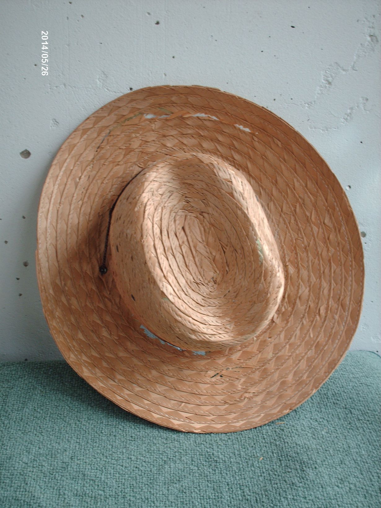 Olkihattu on ostettu kesällä 1976 Kööpenhaminasta. Kun kieltä taitamattomana en ymmärtänyt paljonko se maksaa myyjä muistaakseni näytti kellosta numero kolmea eli 3 kruunua. Ollut menossa jätteisiin jo jonkin aikaa mutta vielä pyöri parvekkeen nurkassa.