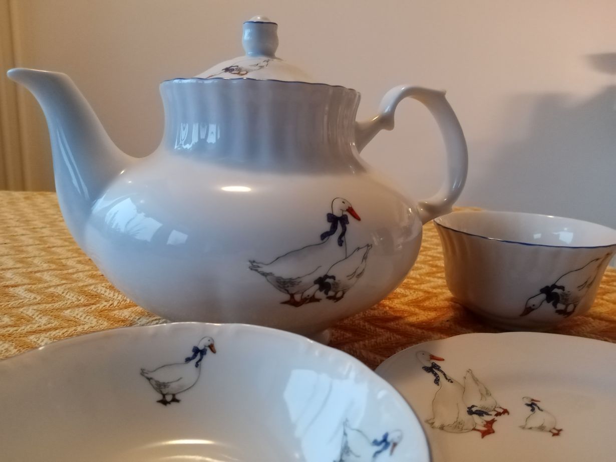 Tutustuin ihanaan Nadjaan Venäjällä lastenleirin keittiössä. Sain häneltä läksiäislahjaksi Beatrix Potter -kuvioisia kulhoja. Ostin Gostinyj Dvorista teekannun ja tarjoilulautasia.