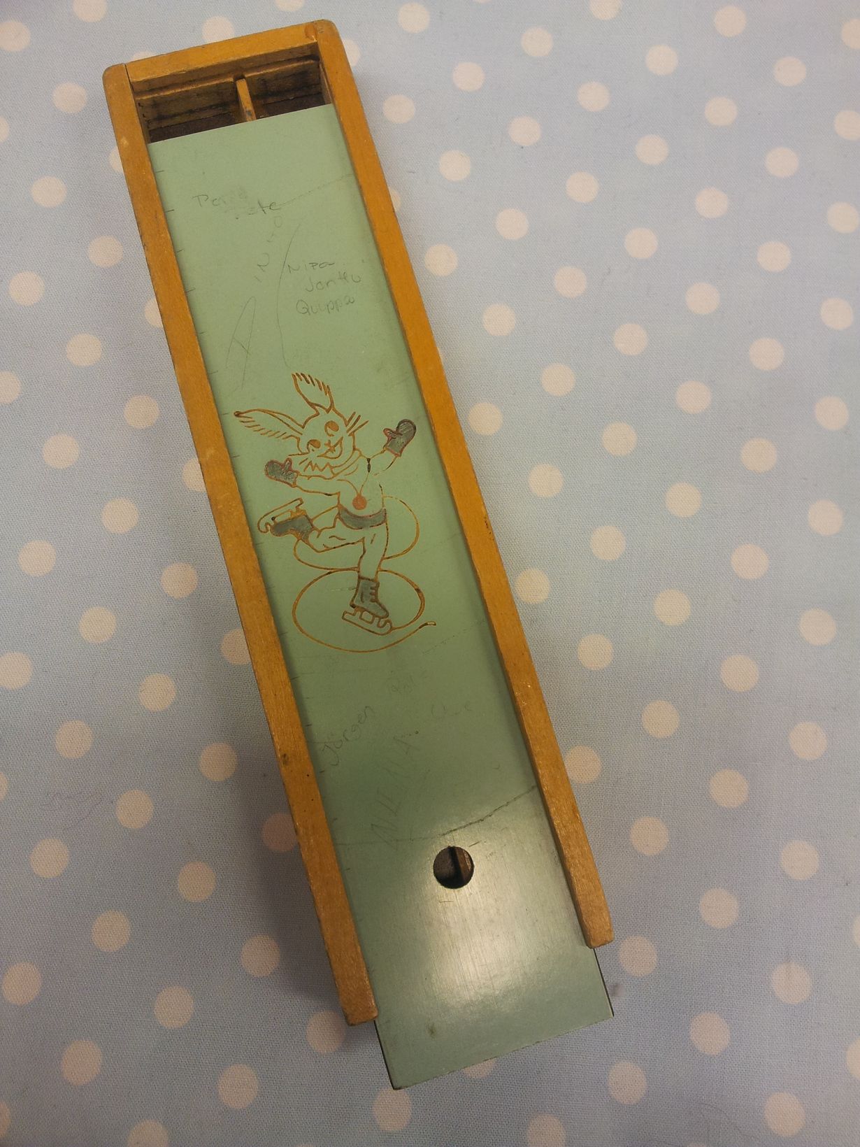 Olen saanut penaalin ala-asteella Venäjän tuliaisena, alla merkintä 6.A., se oli vuosi 1984. Päällä lyjykynällä kirjoitettuna Nena ja Dingo...voi muistoja!