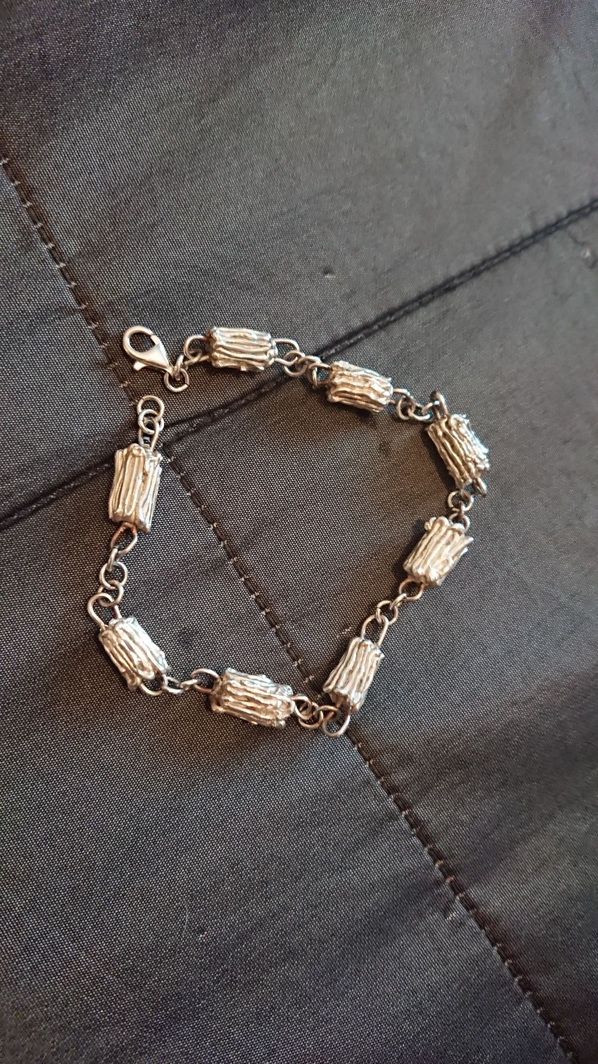 Sain tämän kauniin korun anopiltani marraskuussa 2015. Hän on itse tehnyt korun. Rannekoruun liittyy muistoja: tyttöni oli juuri syntynyt ja itselläni oli myös syntymäpäivä seuraavalla viikolla. Koru muistuttaa siitä talvesta ja rakkaista ihmisistä.