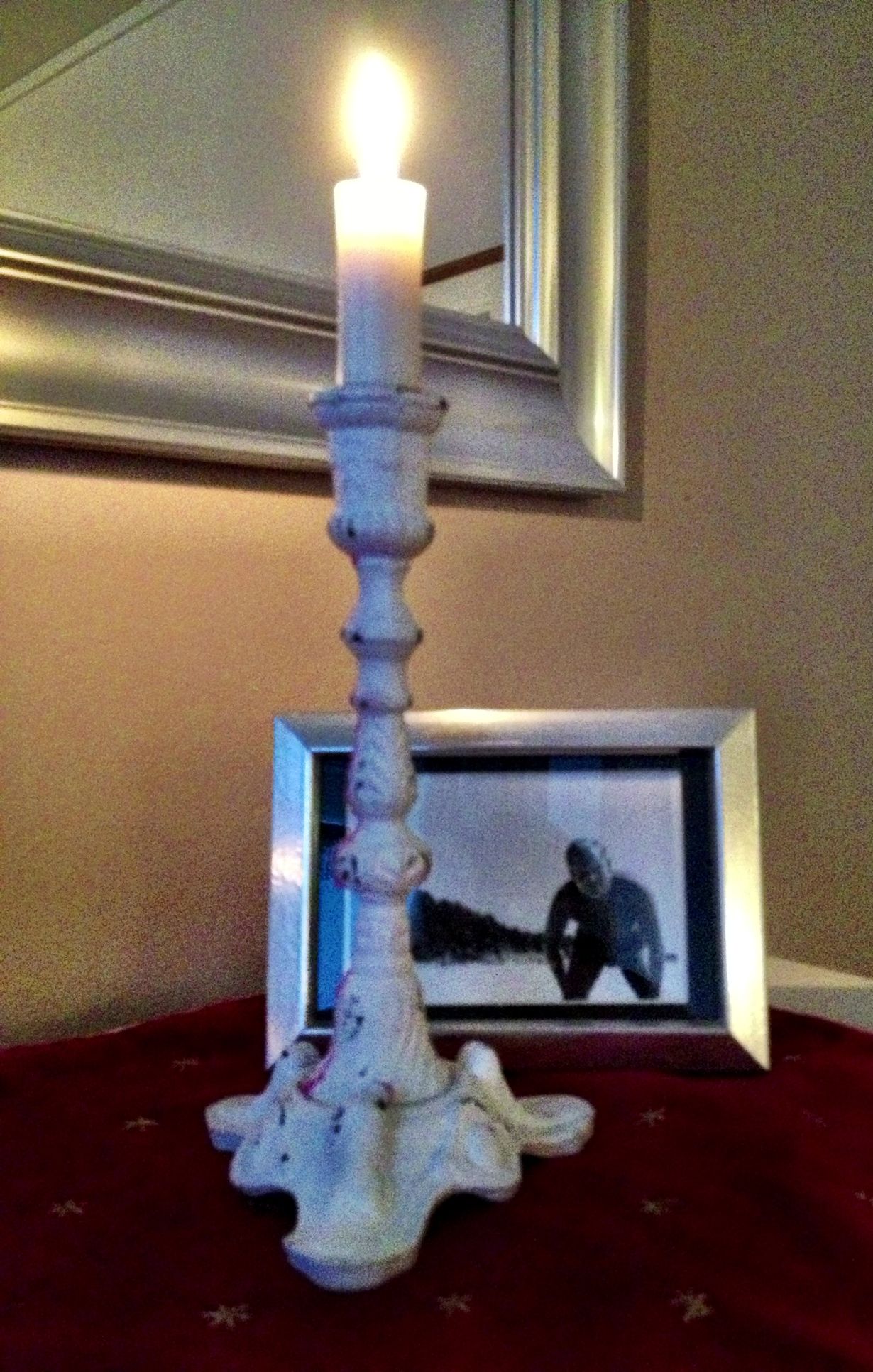 Isäni kuoleman jälkeen ostin tämän kynttilänjalan, joka tuntui suorastaan huutavan minulle. Siitä asti se on ollut isän kuvan äärellä ja joka päivä siinä palaa kynttilä 3