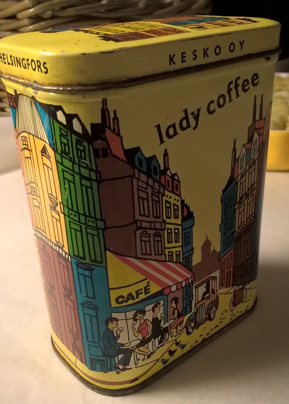 Tämän ihanan aarteen löysimme mummon jäämistöä siivotessamme. On kunniapaikalla hyllyllä piristämässä värillään keittiön ilmettä.