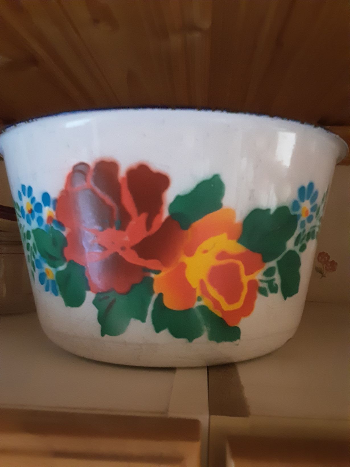 Tässä kupissa valmistettiin salaatti joka sisälsi salaatinlehdet,tomaatin ja kurkun,kermaviilikastike oli pienemmässä samankuviollisessa kulhossa.