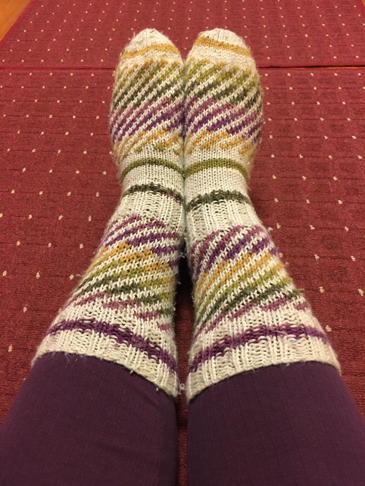 Neuloin nämä sukat äidilleni. Hän käyttää sukkia välillä hartioilla tai jopa käsissä lämmikkeenä. Ovat kuulemma ihanat.