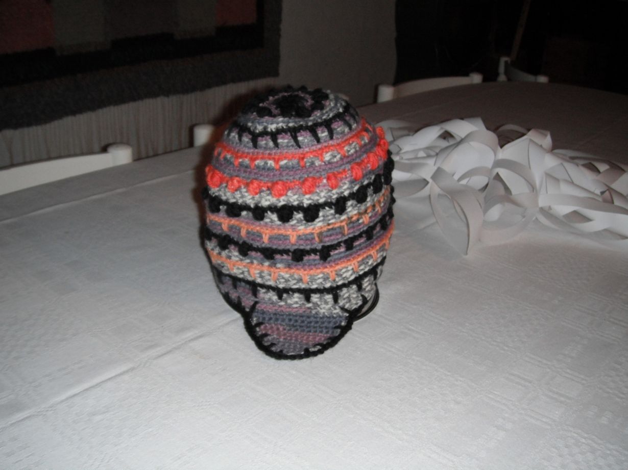 Virolaisesta käsityölehdestä sain vinkin tehdä tällaisen myssyn. Epäilin, että se olisi liian nuorekas mummolle, mutta sehän sopi vallan mainiosti.