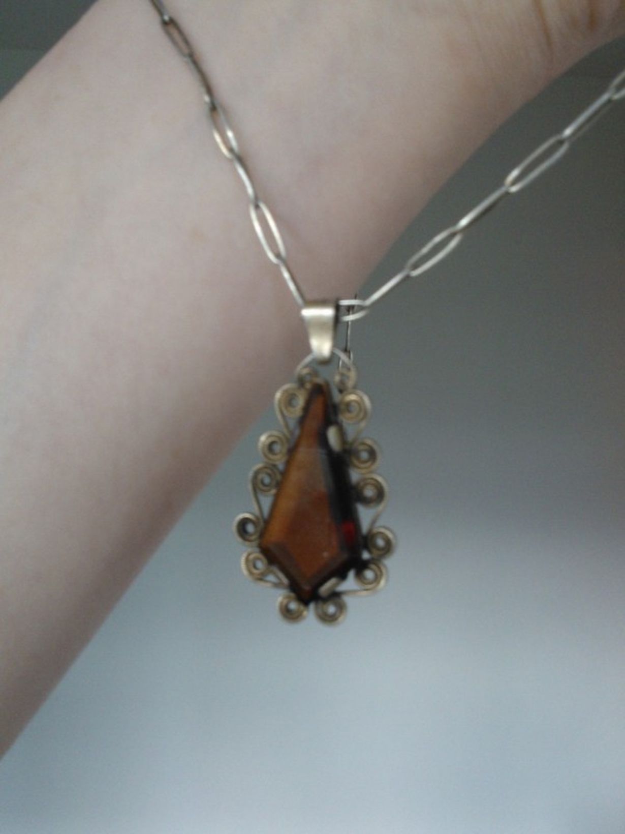Sain tämän korun mummoltani kun olin hyvin pieni, ehkä viiden vanha. En enää muista miksi, mutta kovin se on kaunis, ja "aarrelaatikossani" säilytetty ja hyvänä pidetty. Kaulassa en tosin ole pitänyt, kun lukko on rikki - pitäisi laittaa siihen uusi, niin pääsisi koru ihmistenkin ilmoille.