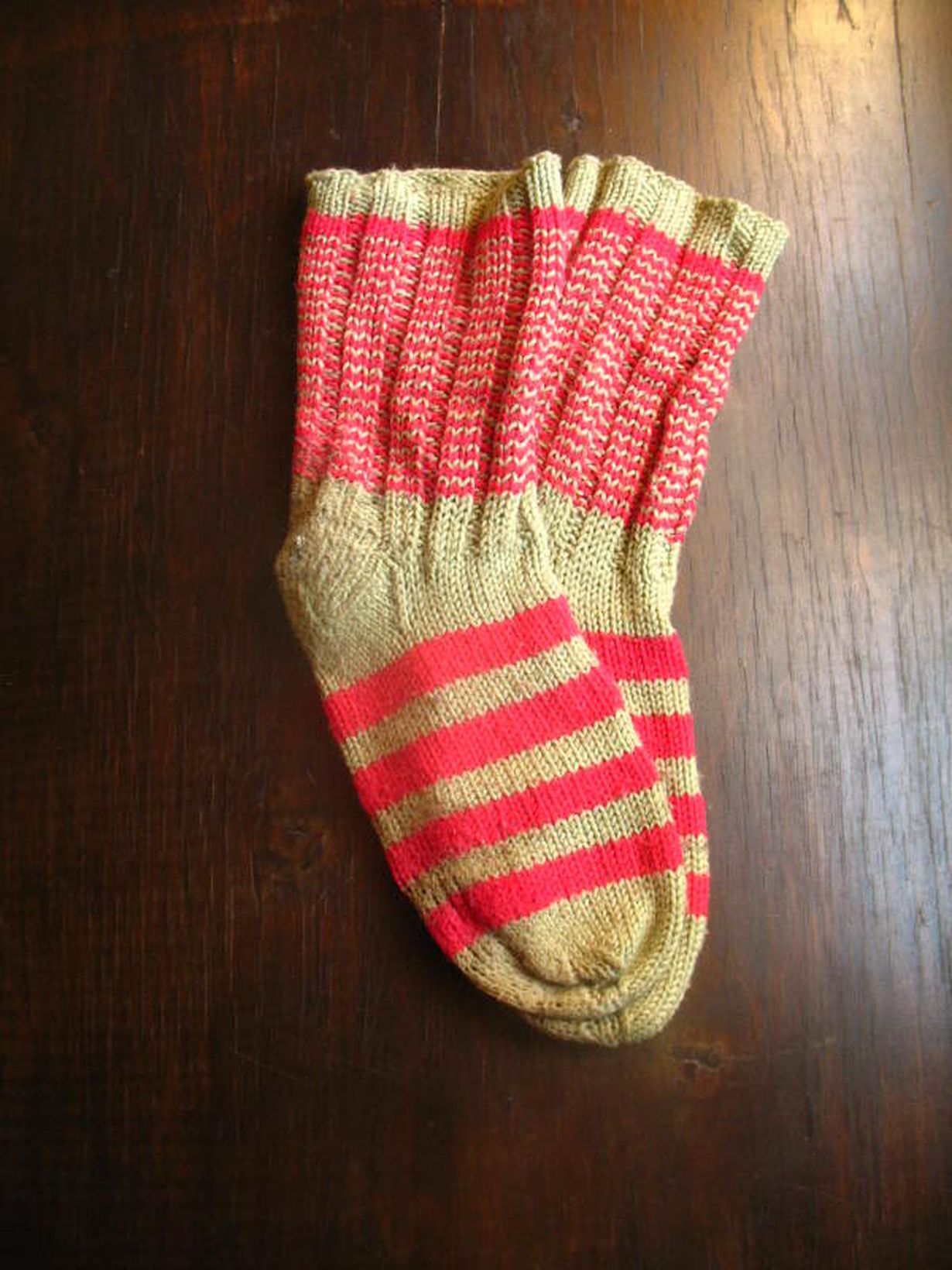 Nämä ovat viimeiset sukat, jotka Mummu antoi. Ne ovat melkein puhki kuluneet, mutta en ole käyttänyt niitä enää vuosiin että säästyisivät. Mummu kuoli tänä vuonna. Onneksi ehdin oppia sukan kutomisen edes auttavasti. Putkisukkia tuli pitkään. Yksi neuvo Mummun piti vielä opettaa kädestä pitäen liittyen kantapäähän, mutta se jäi. Tein äidilleni eli hänen tyttärelleen lohdutukseksi samoista väreistä villasukat viime keväänä, tulivat vähän eri paria, mutta jalassa näkyivät olevan kun viimeksi tavattiin!