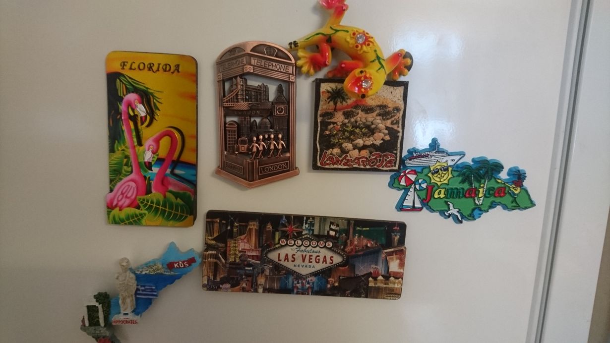 Mummu on saanut jääkaappimagneetteja ympäri maailmaa lapsilta ja lapsenlapsilta. Ne koristavat jääkaapin ovea yhdessä valokuvien kanssa.