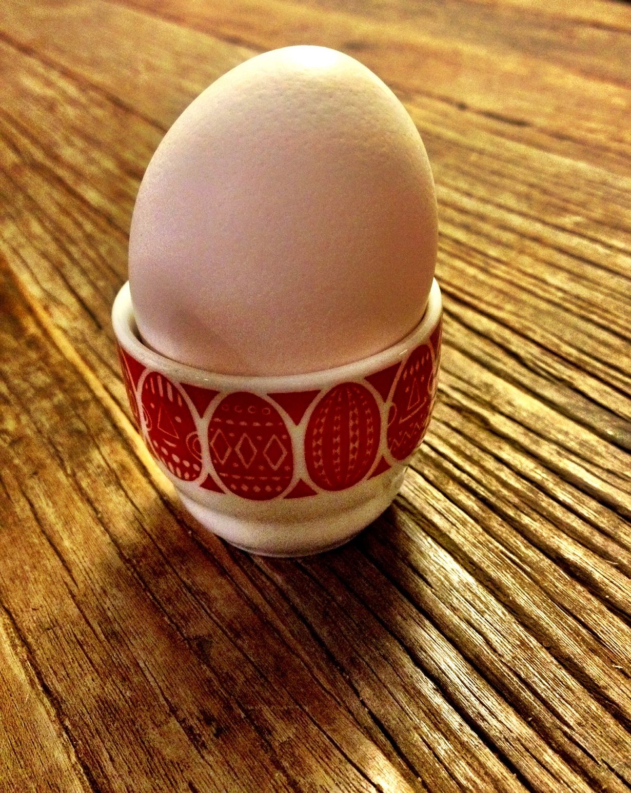 Yksi neljästä erivärisestä Arabian Kauno -munakupeista, jotka olen perinyt äidiltäni. Kupit ovat vuodelta 1968 ja edelleen käytössä jos ei nyt joka päivä, niin joka viikko kuitenkin. Rakkaimmat astiamuistoni lapsuudesta!
