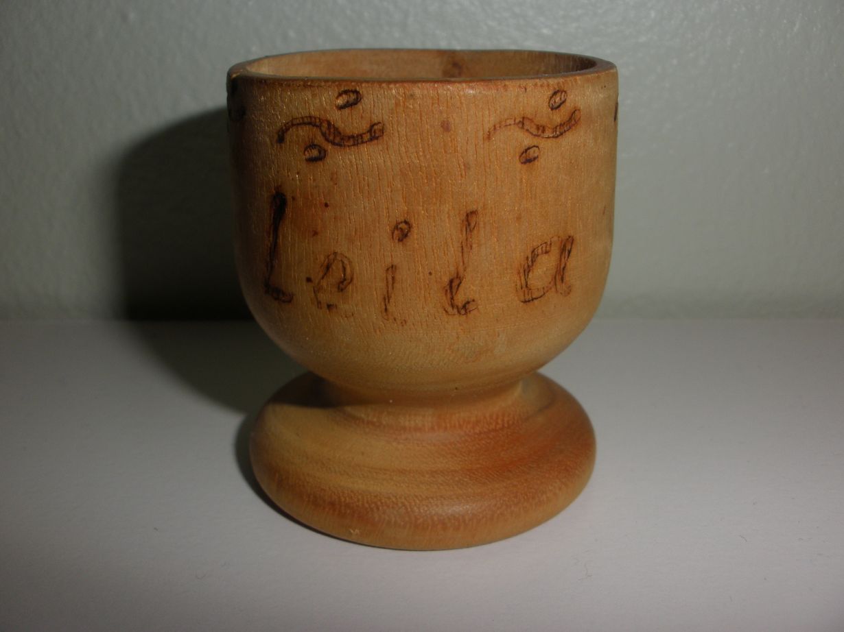 olimme vuosia sitten ulkomailla,en muista missä,ja siellä teetimme jokaiselle perh.jäsenelle oman nimellä varustetun munakupin,mukaan tuli myös teline kuppeja varten.