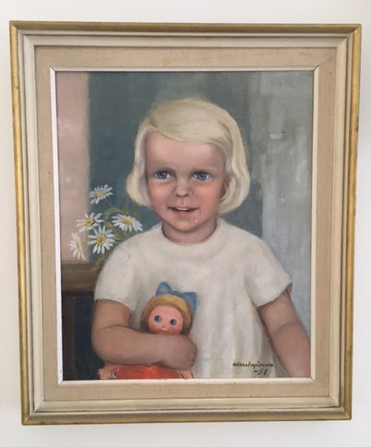 Tämä aarre on kulkenut elämäni muutoissa ja hellästi pakattu aina ensimmäisenä mukaan. Ihana, Hilkka Impivaaran maalaama muotokuva minusta pienenä tyttönä.