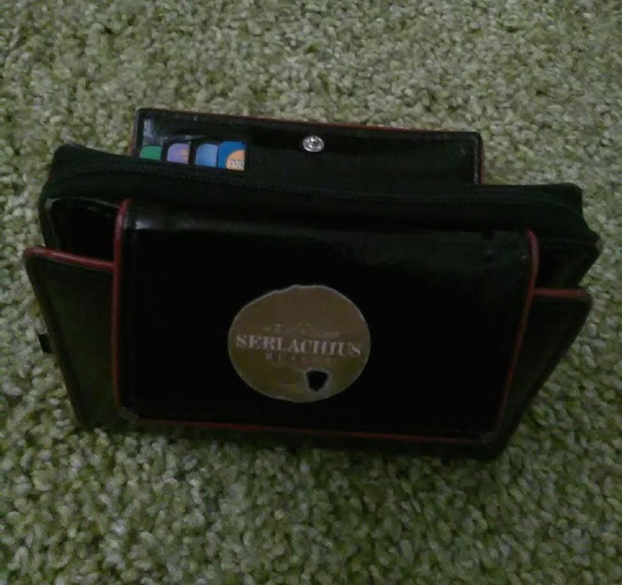 Tämä musta lompakko on palvellut minua jo vuosia, ja sen kyllä huomaa. Tykkään lompsastani, se on käteen sopivan kokoinen, kompakti kaveri. Tapanani on liimailla museoiden pääsylipputarroja vähän sinne sun tänne, sellainen löytyy myös lompakon läpästä.