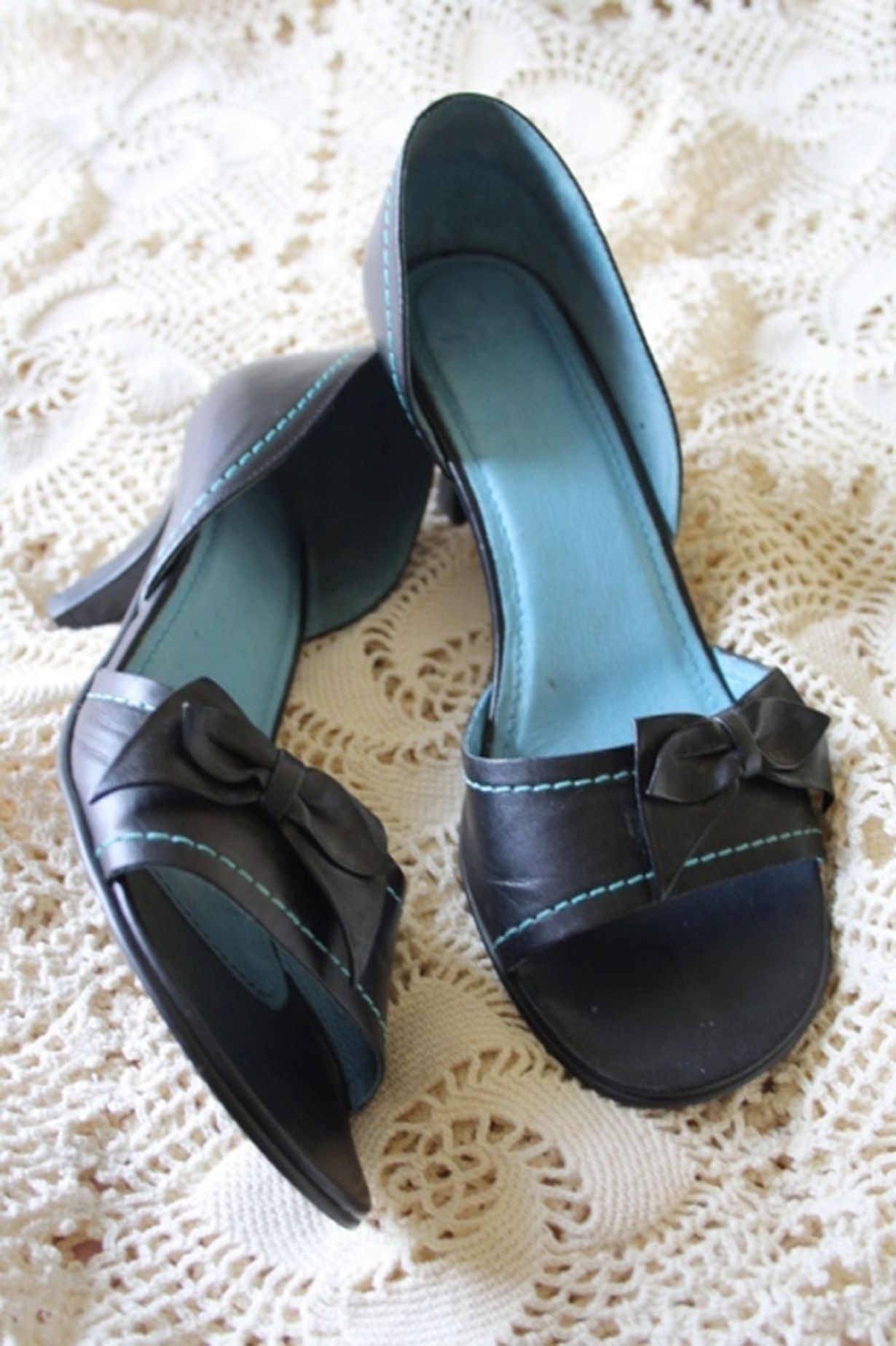 Musta-turkoosi rusetti korkokenkäni