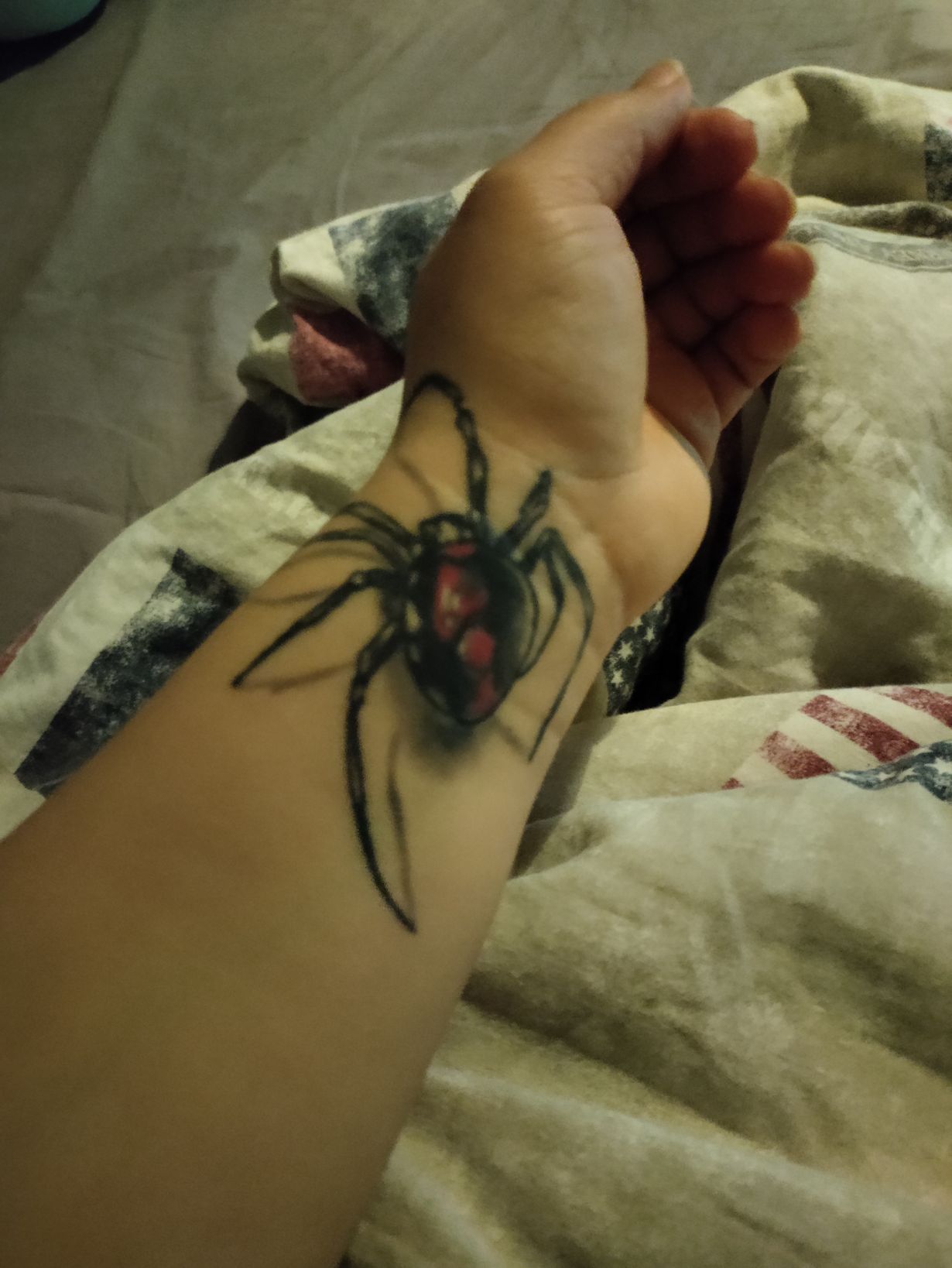 Kuvastaa pelkoa hämähäkkejä kohtaan. Olin jo pitkään haaveillut kuvasta ja alunperin olisin sen halunnut jalkaterään, mieli muuttui ja peitin sillä vanhan kuvan joka oli pieni epämuotoinen sydän.