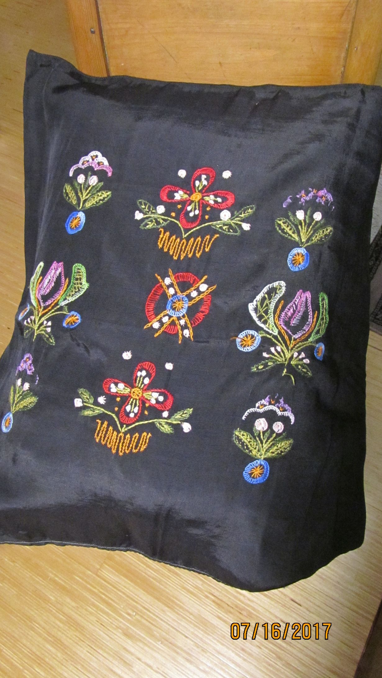 Sohvatyynyn päällinen on kirjailtu silkkikankaalle. En ole vuosiin edes raskinut