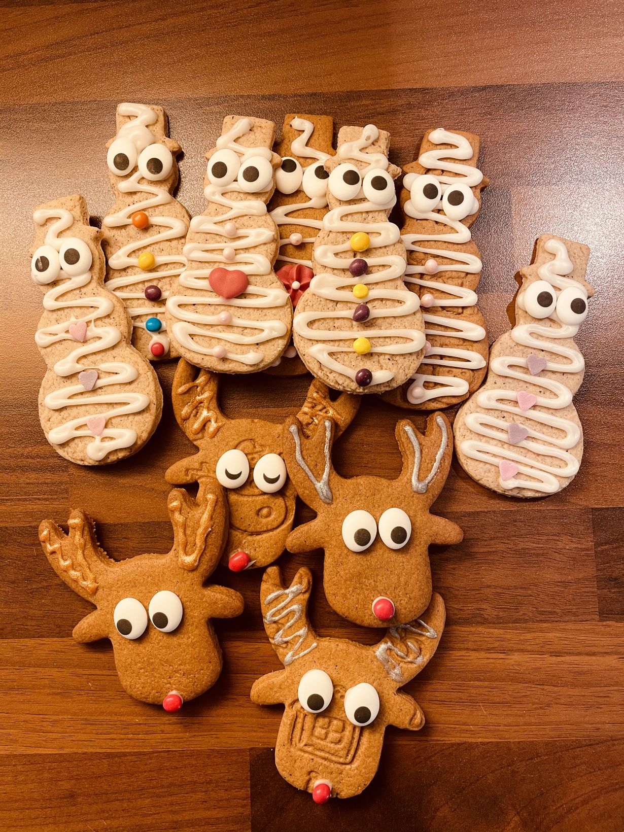 Tein pipareita lahjaksi lähimmäisilleni. Lumiukoista tuumasivat heti, että näyttävät seoinneilta muumioilta. Tottahan se oli!