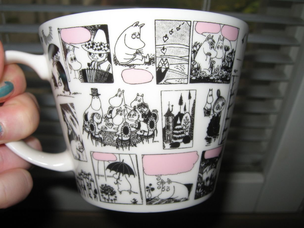 Tämä oli minulle rakas muki. Kilpailuunne varmaan tulvii Arabian Muumi-mukeista kuvia, joita minullakin on. Mutta tämä on Yamakan valmistama. Jouduin kuitenkin rahapulassa tästä luopumaan, nyt harmittaa. Mukissa on niin kaunis kuviointi, tällaisen jos vielä löytäisin en päästäisi pois luotani.