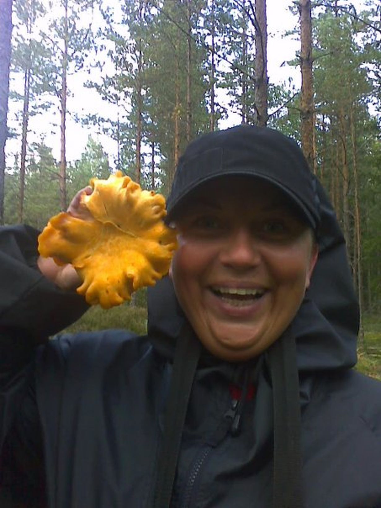 Näin ison kanttarellin olen löytänyt tähän mennessä vain kerran elämässäni, melkein kasvojeni kokoinen! Tuosta yhdestä sai jo kastikkeen. Oli hyvä sieni vuosi silloin.