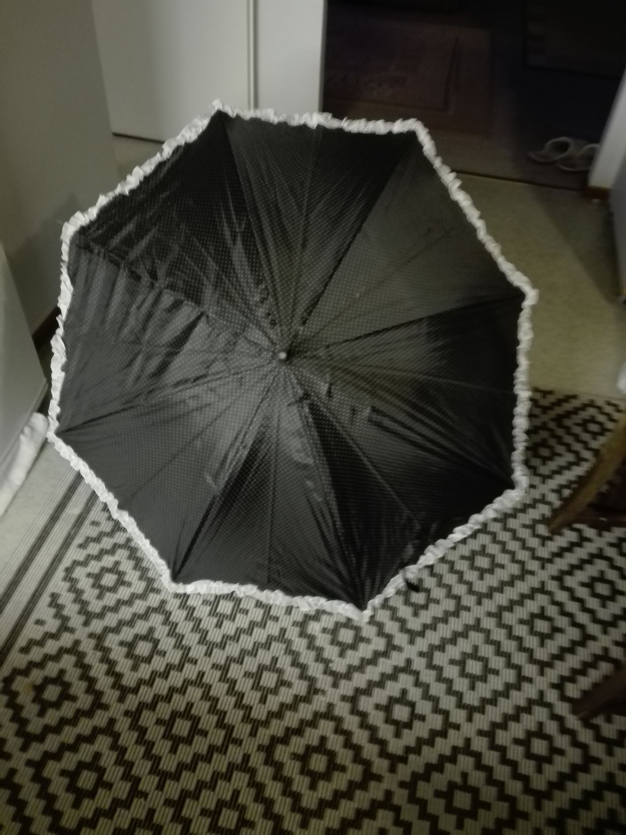 Tämä varjo on kulkenut vuosia mukana tulee ihanan naisellisen hempeä sadekävely kun tämän alla kuljen sateessa, voisin käyttää missä ja milloin vaan