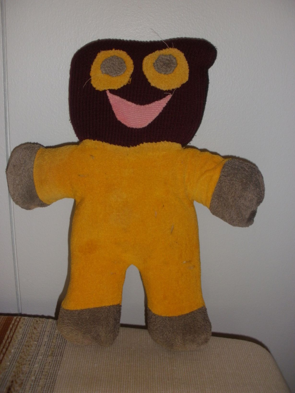Joku lapsistani sai tämän nallen joskus 70 luvulla ja kesällä löysin sen tyttäreni kesämökin nurkalta märkänä ja likaisena,otin sen pesin ja kuivasin ja nyt lapsenlapset leikkivät sillä.