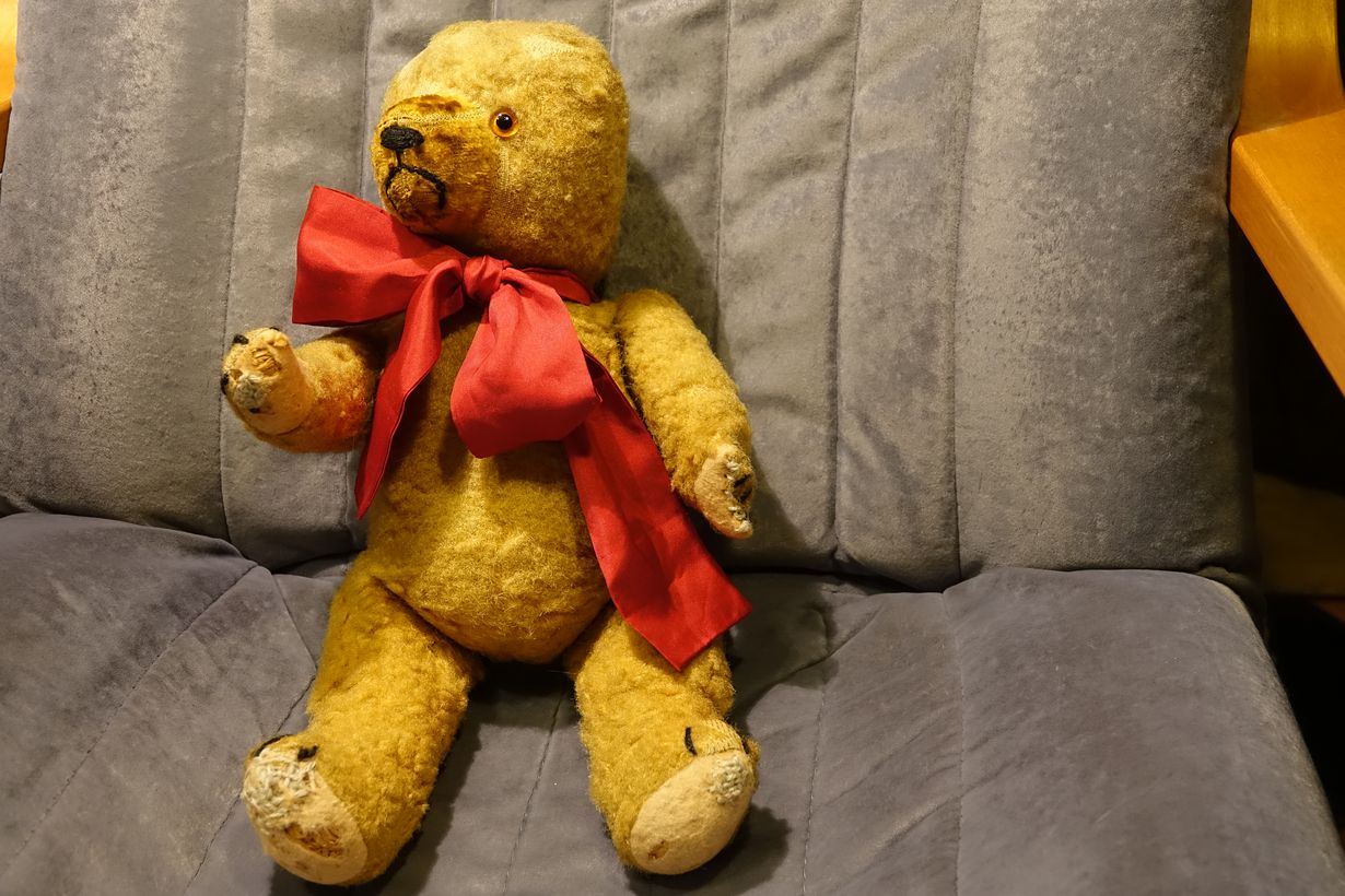 Tämä elämää nähnyt nalle on minulle tärkeä.Korvat ovat lähteneet pois ja jalkapohjat