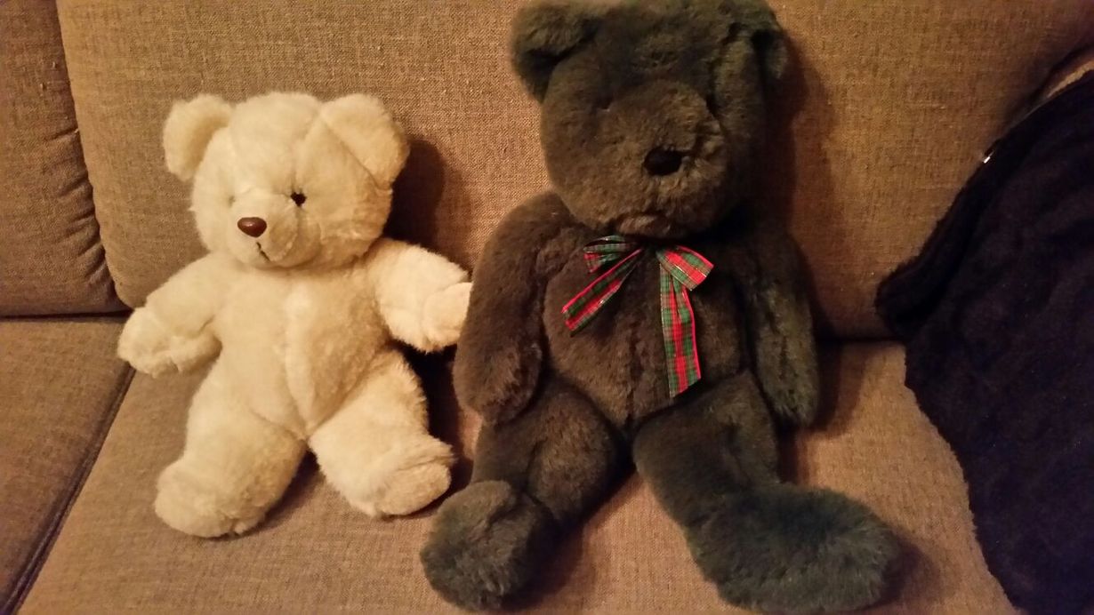 Minulla on tällaiset nallet, joista vaalean nallen saanut kauan sitten ja toinen ostettu kirppikseltä. Tuon isomman tummanvihreän nallen on opiskelijapoikani myös kelpuuttanut omaksi pehmonallekseen :)
