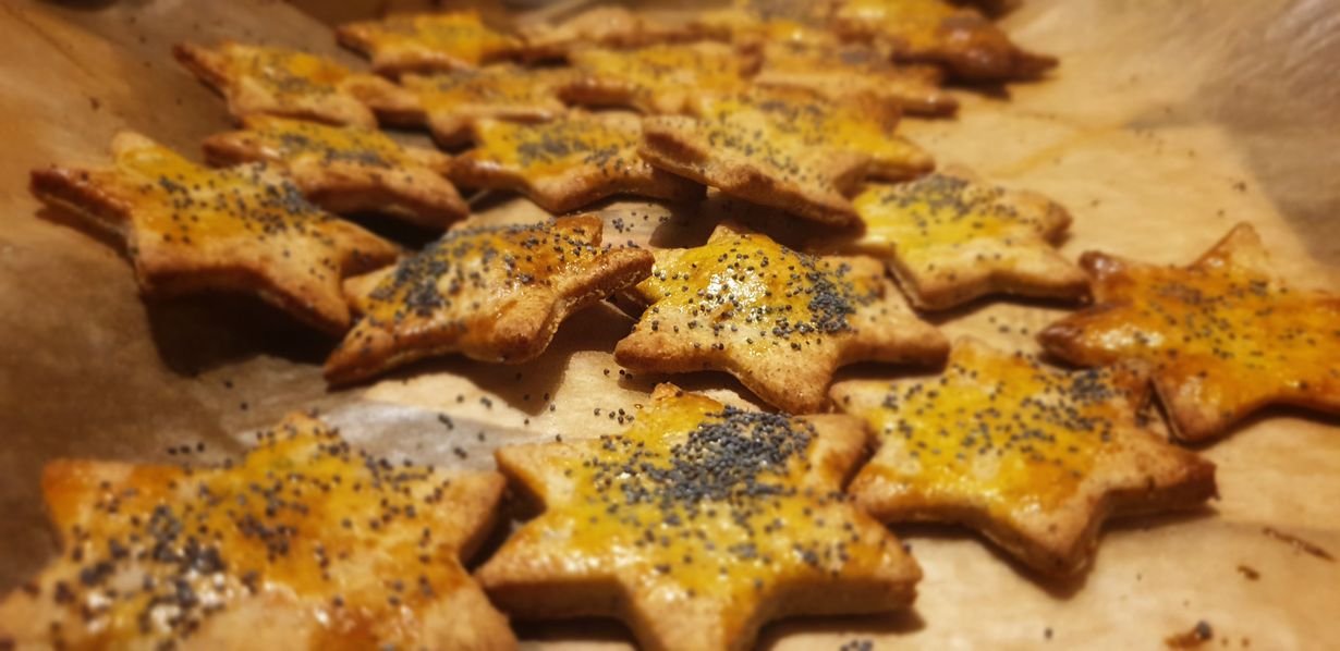 Juustoiset suolakeksit maistuivat ihanilta, olivat täydellisen rapeita ja päälle ripotellut unikonsiemet - omasta puutarhasta! - kruunasivat nautinnon. Harmi kun sovelsin pohjana olleista parista reseptistä niin oman version etten enää muista mitä tuli taikinaan laitettua 😁