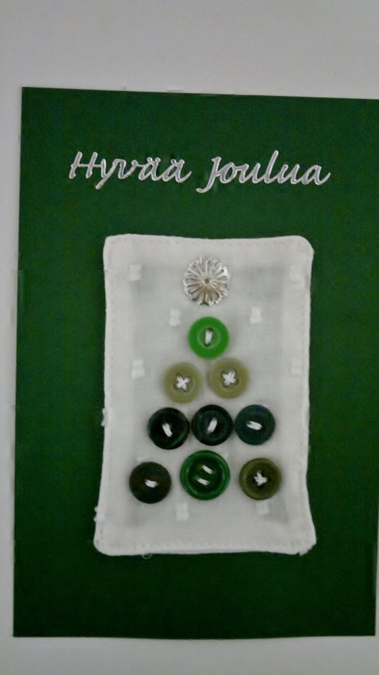Tämä ihana arki: joulukortti Nappikuusi 18.10.2013 klo 20:41 Kirpputorien nappilaatikoista ja tytön kesämekosta löytyivät ainekset viime jouluksi tekemiini kortteihin. Pirjo