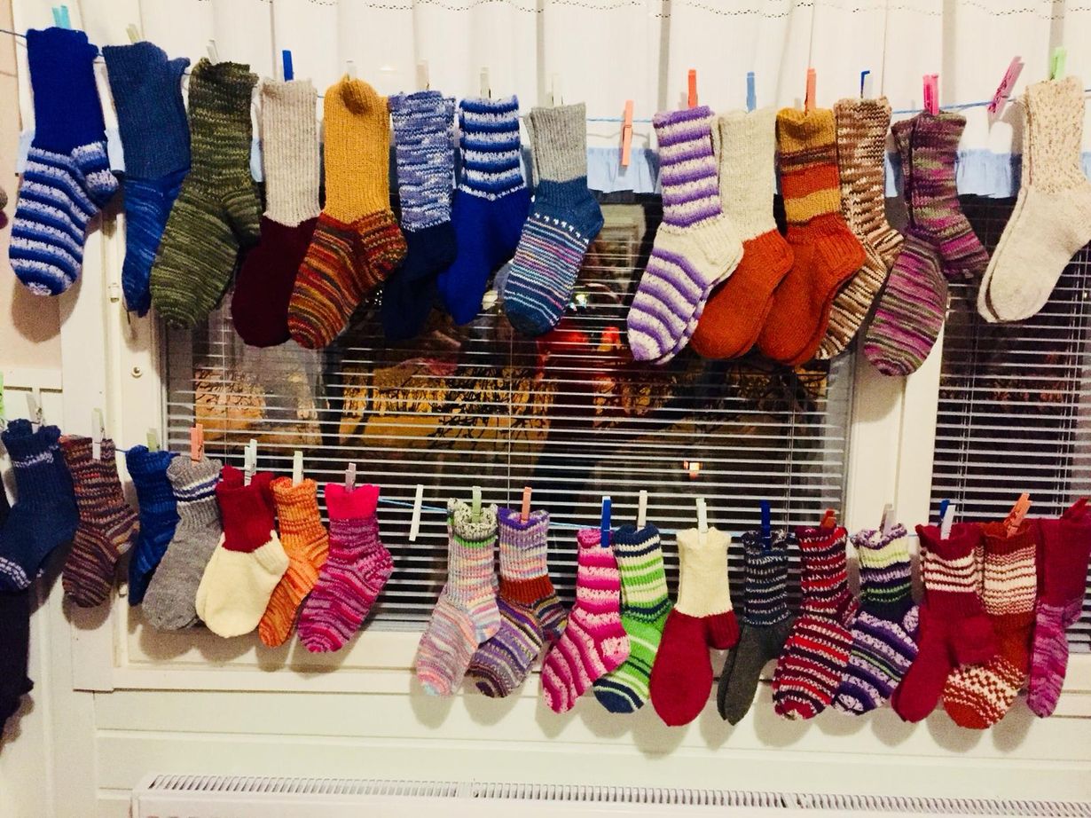 Siskoni ja minä täytimme 70 vuotta. Jokainen vieras sai valita sukat