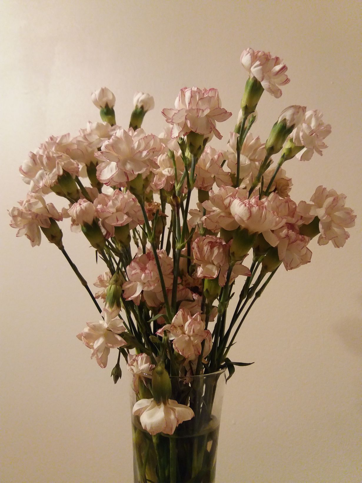 Tämä kimppu on ostettu jo kolme viikkoa sitten marketin kukkahyllystä, ja yhä se jaksaa ilahduttaa. Vähän on jo kukat nuutuneet, mutta ei henno heittää pois.