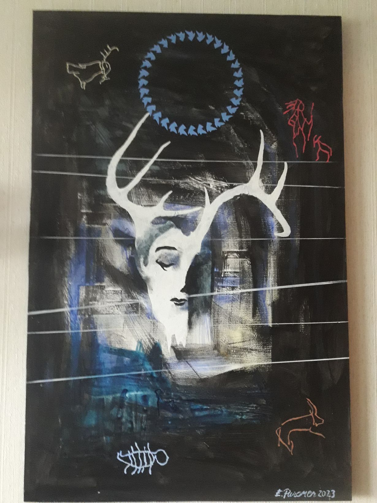 Tämä Ensio Purasen maalaus vangitsi katseeni näyttelyssä ja halusin sen ostaa kotiini taiteilijalta, jonka teokset edelleen kiehtovat tyylillään.
