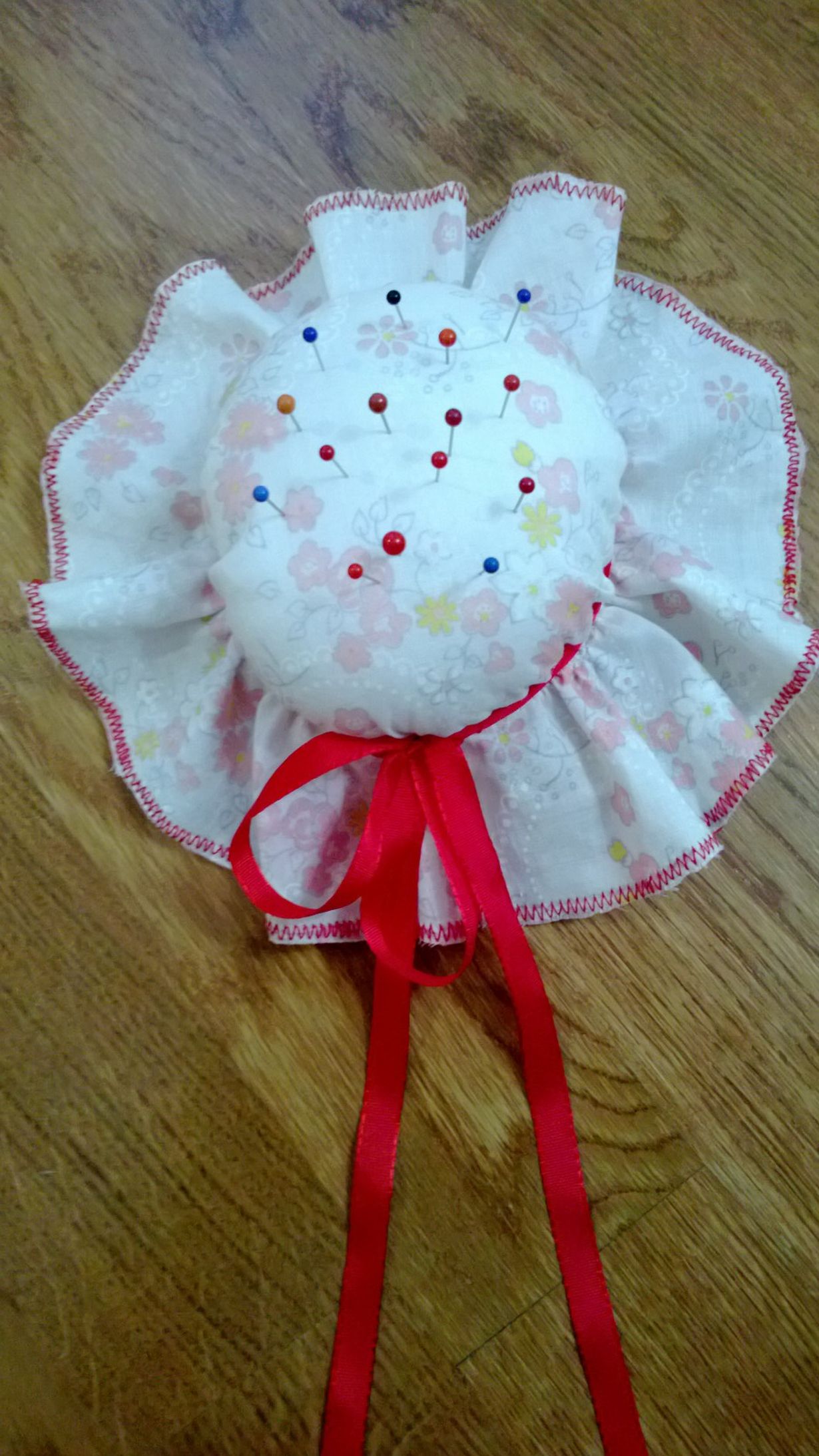 Itsetehty neulatyynyhattu mummulan vanhasta kankaasta.