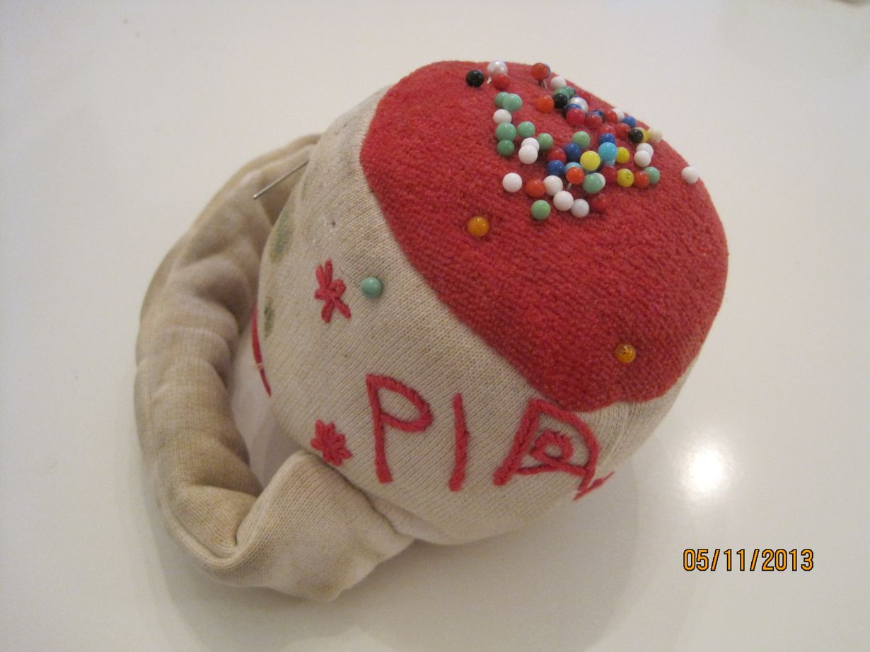 Käsi ja taideteollisessa vuonna 1991 ensimmäisen ompelutunnin työ. Itse valitsemilla kankailla, joku luokka tovereista vielä kirjoi nimeni ja kukkaset tyynyyn. Hyvä käytössä (kieputus käsivarteen ja hyvin pysyy) ja niin rakas 3