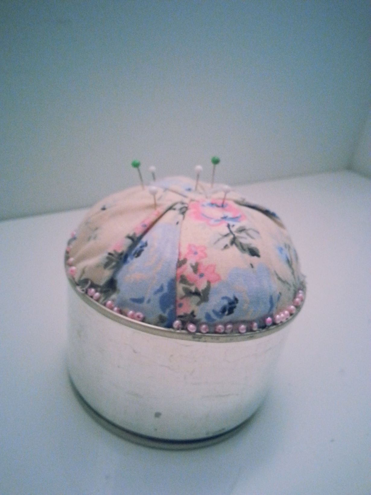 Käsityö tunnilla tekemäni herkullinen kierrätetyistä materiaaleista tehty neulatyyny