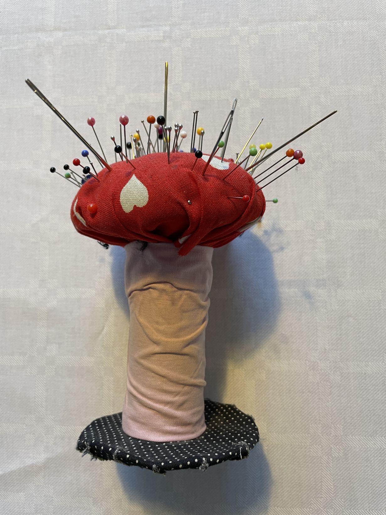 Muutimme 1980-luvun lopussa muutamaksi vuodeksi Brittein saarelle. Mieheni ja tyttäreni värkkäsivät minulle neulatyynyn, jota olen siitä asti käyttänyt. Rakkaudella tehty❤️