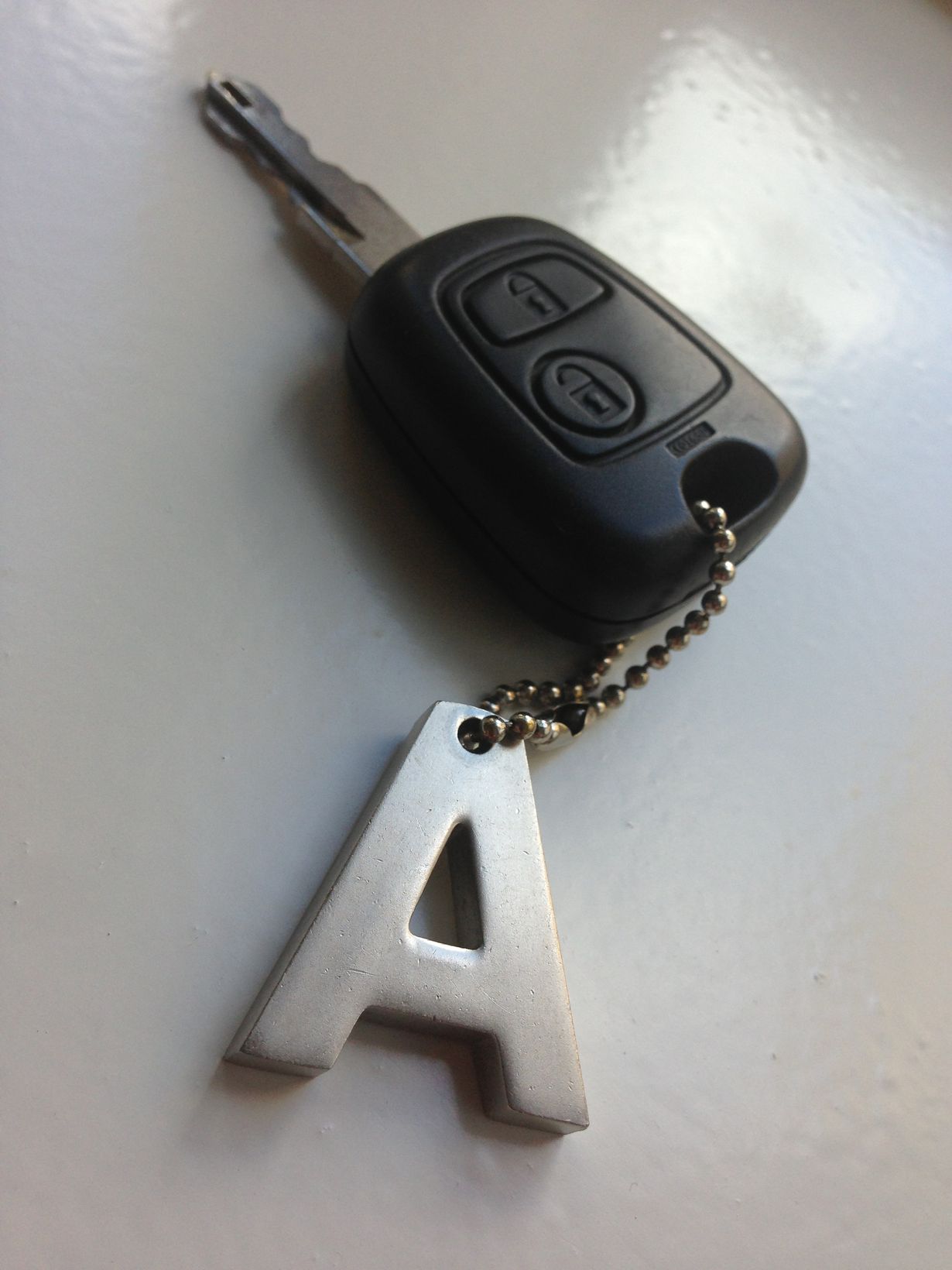 Tämä ihana arki: auton avaimenperä A niin kuin auto 11.8.2013 klo 13:00 Metallinhohtoinen A sopii samanvärisen auton kaveriksi kuin piste iin päälle. Saskia