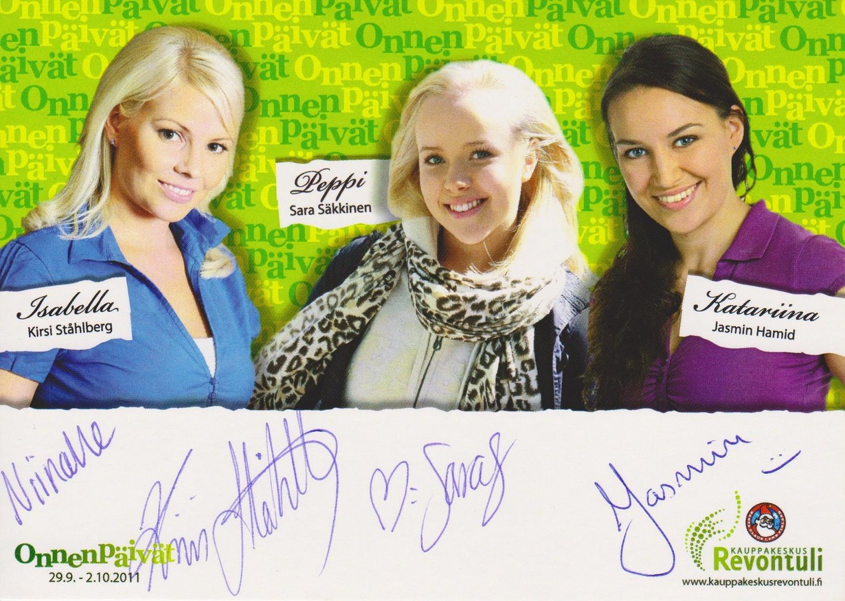 Lähetä kuva julkkiksen nimmarista – voit voittaa Arabian Pastoraali-astioita! Nimmarit Niina 30.12.2019 klo 17:39 Sain nimikirjoitukset Salatut elämät- näyttelijöiltä kauppakeskuksessa järjestetyssä tapahtumassa.