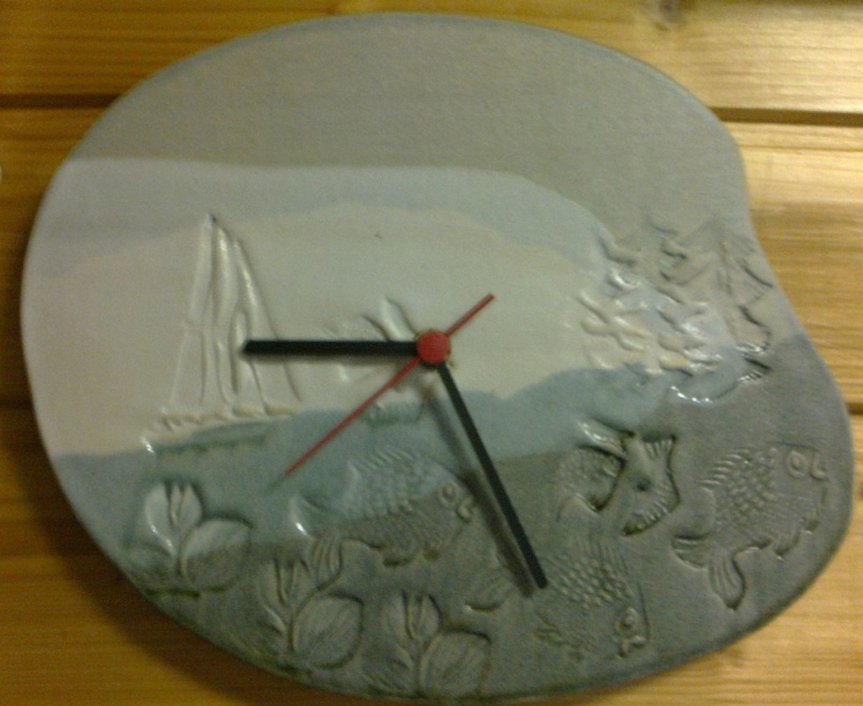 Tämä ihana arki: seinäkello NOIN aikaa 4.11.2011 klo 16:01 tämä ihana keraaminen purjehdus / kala-aiheinen kello.Tästä näkee ajan noin suuntaa antavasti,mutta silti pysyn aivan tarkassa ajassa.