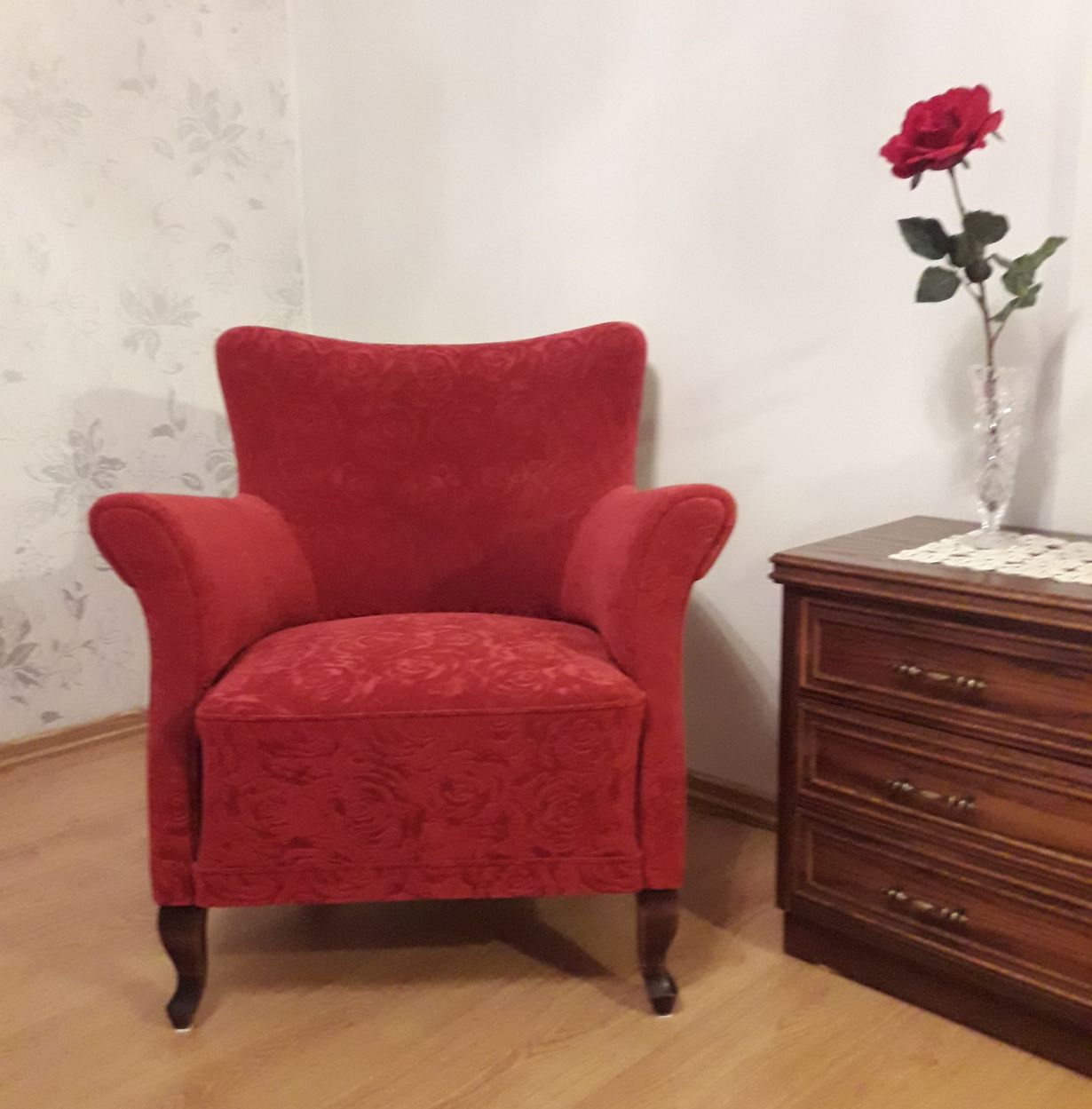Rakennettiin talo ja takkahuone, johon tuolini toisen tuolin ja soffan kanssa asettuivat "asumaan". Äitini käydessäni meidän luona, ihastui nojatuoliin, jossa hänellä oli hyvä istua. Vuodet kuluivat ja me erosimme mieheni kanssa.