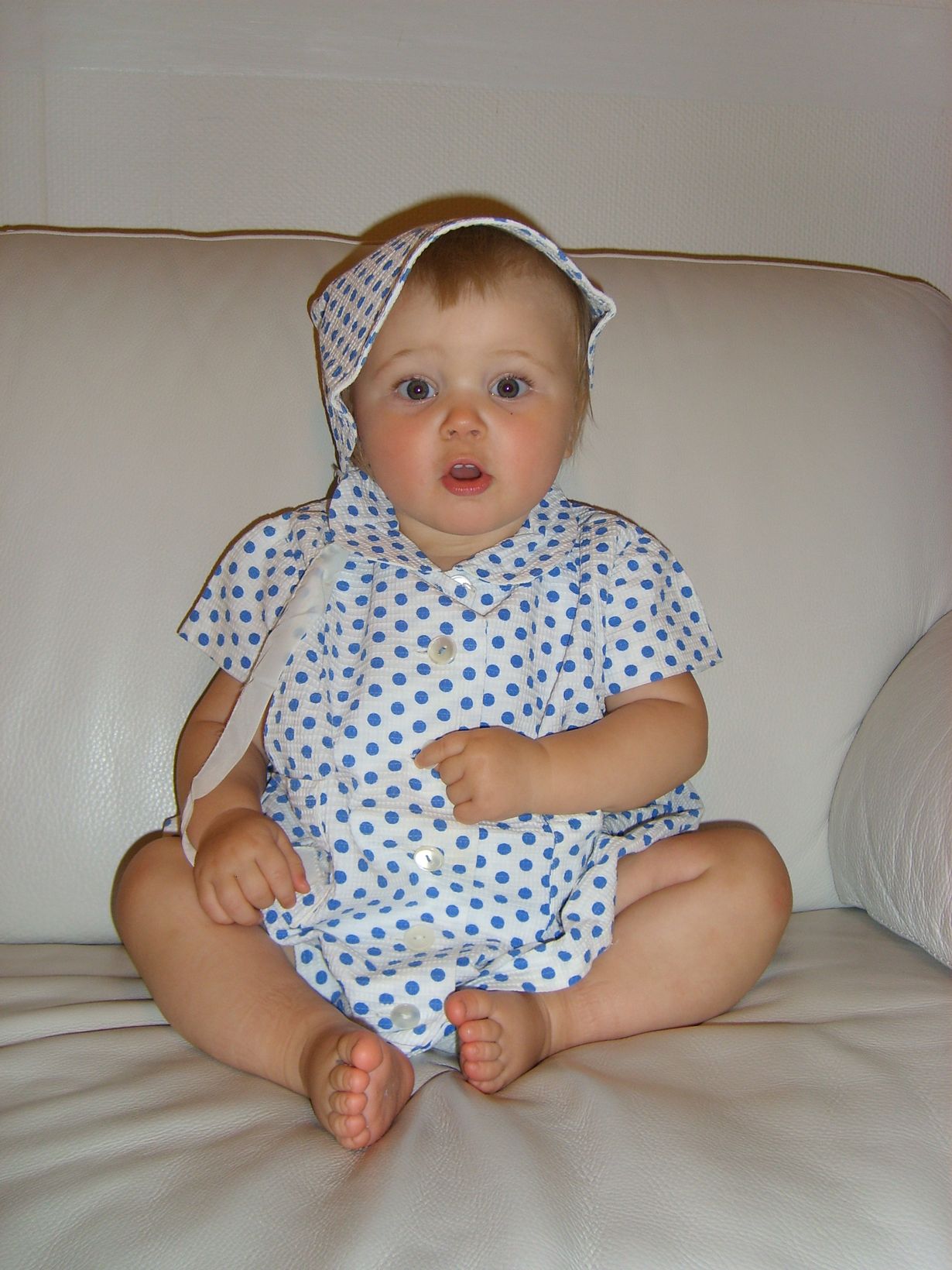 Tyttösellä on yllään isoäitinsä 1950-lukulainen mekko ja hilkka