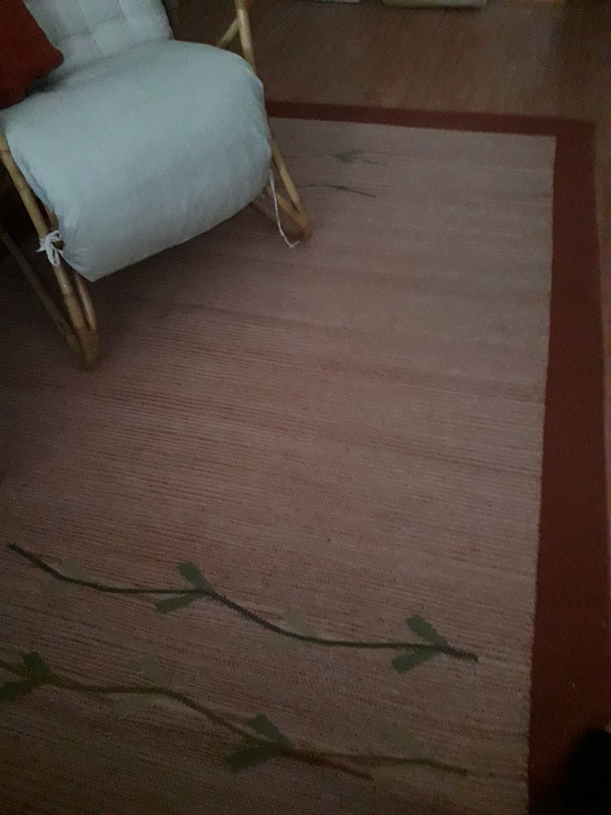 Lempimatto 1953 rakennettuun kerrostaloon löytyi kirpputorila n. 12 vuotta sitten. Ohut ja helppohoitoinrn, ja sävyt täsmää talon väreihin!