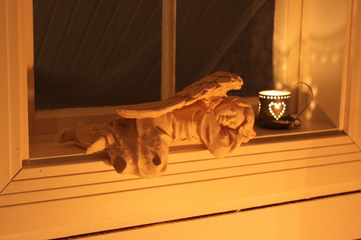 Tämän ihanan enkelin sain 30-vuotislahjaksi mieheltäni, liki 10-vuotta sitten. Se lepäilee vitriinikaapin päällä ympäri vuoden, mutta jouluisin se pääsee nukkumaan hieman näkyvämmälle paikalle kodissamme.