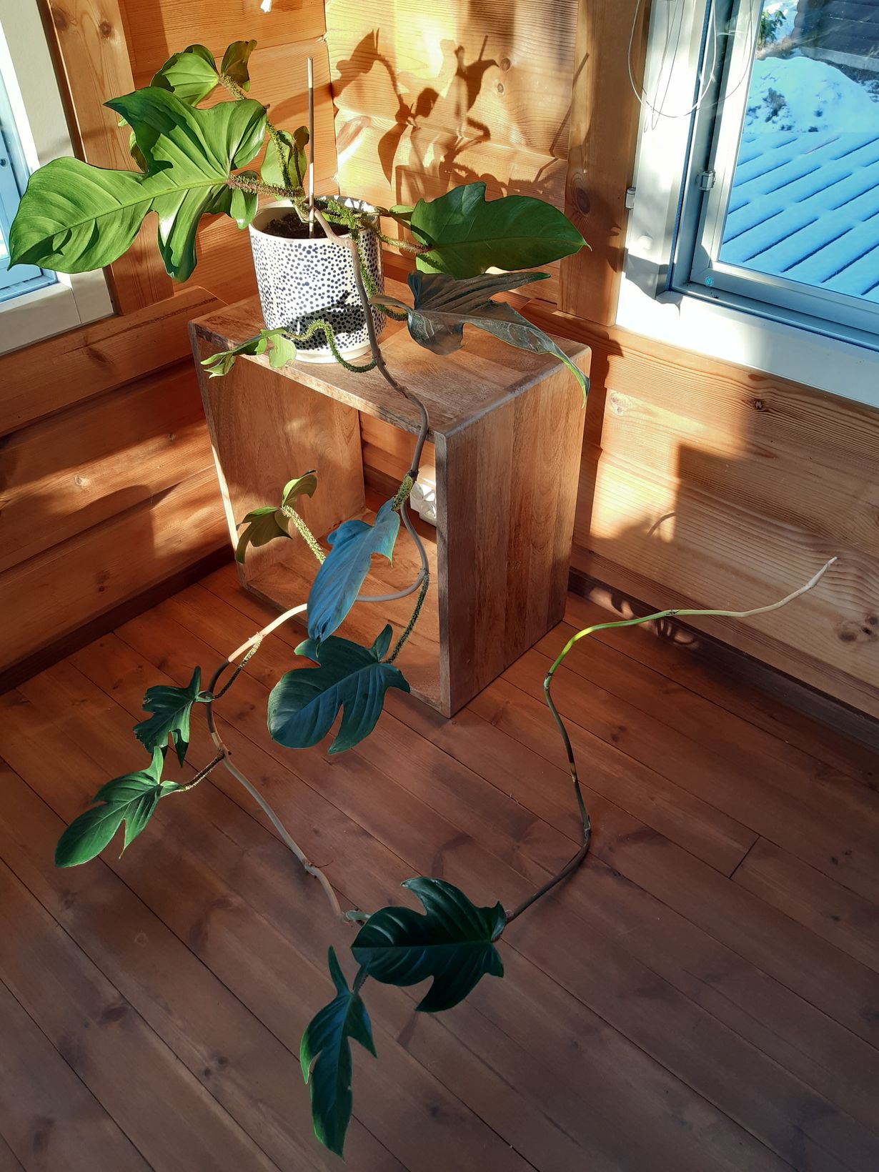 Mieheni toi tämän uuden asukin viidakkooni minulle lahjaksi kun oli tehnyt isyyden tunnustamisen. En ole raaskinut leikata, vaan on saanut kasvaa vauvan tahtiin.. nyt vauva ryömii jo alimmista lehdistä kiinni, täytyy varmaan tarttua saksiin.