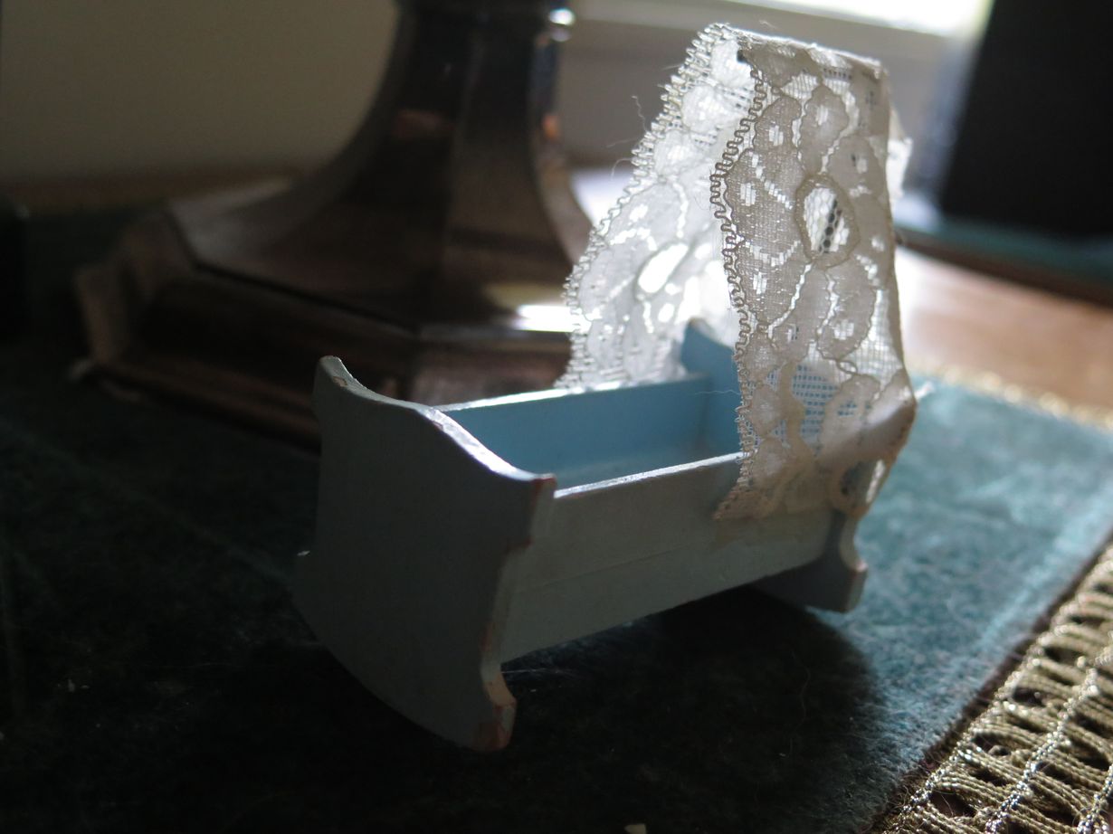 Nukketalo oli rakas. Sitä ei ole ikävä kyllä säästynyt, mutta talosta on jäljellä tämä ihana kehto. Sen pitsi oli pienen tytön mielestä maailman ihaninta.