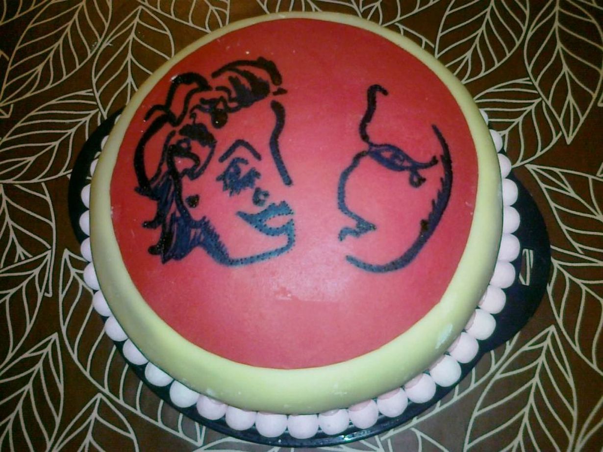 Tein teatterimme näyttelijän syntymäpäivien kunniaksi kakun. Kakun päällä komeilee syntymäpäiväsankarin suunnittelema logo :)ja kakku maistui kaikille :).