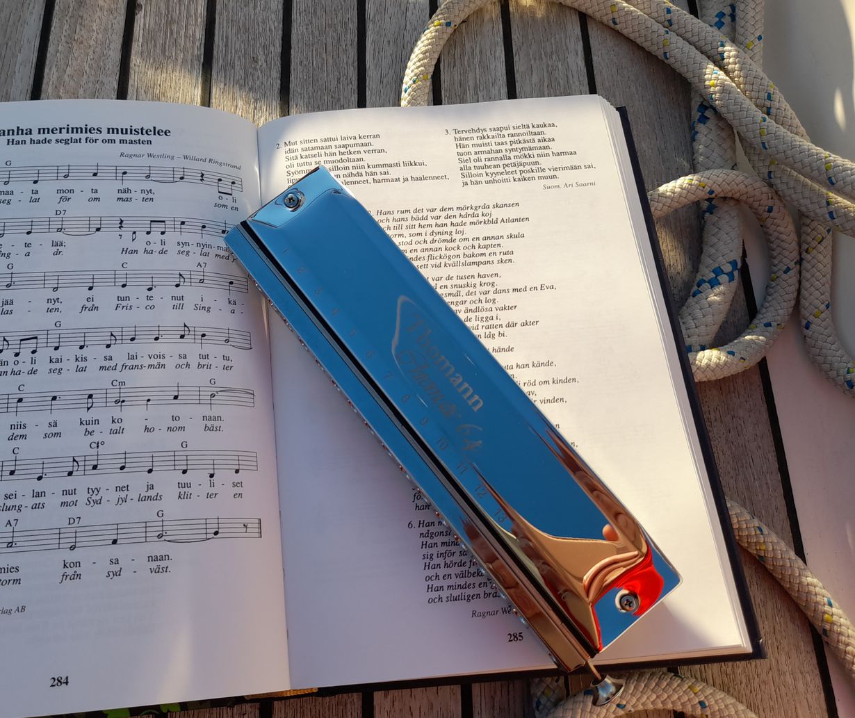 Musiikki kulkee mukanani kaikkialle, muodossa ja toisessa. Asun lähes 100 yötä vuodesta purjeveneessä, ja piano ei sinne mukaan mahdu. Aluksi raahasin kitaraa mukanani, mutta sekin vei liian suuren osan veneen kompakteista neliöistä. Sitten keksin Nuuskamuikkusen: yksinkertaisesta elämästä nauttiva hahmo, joka istuskelee luonnossa huuliharppunsa kanssa. Siinäpä malli minullekin! Huuliharppu mahtuu hyvin mukaan, ja kyllä tällä melodiat jo alkaa taittua.