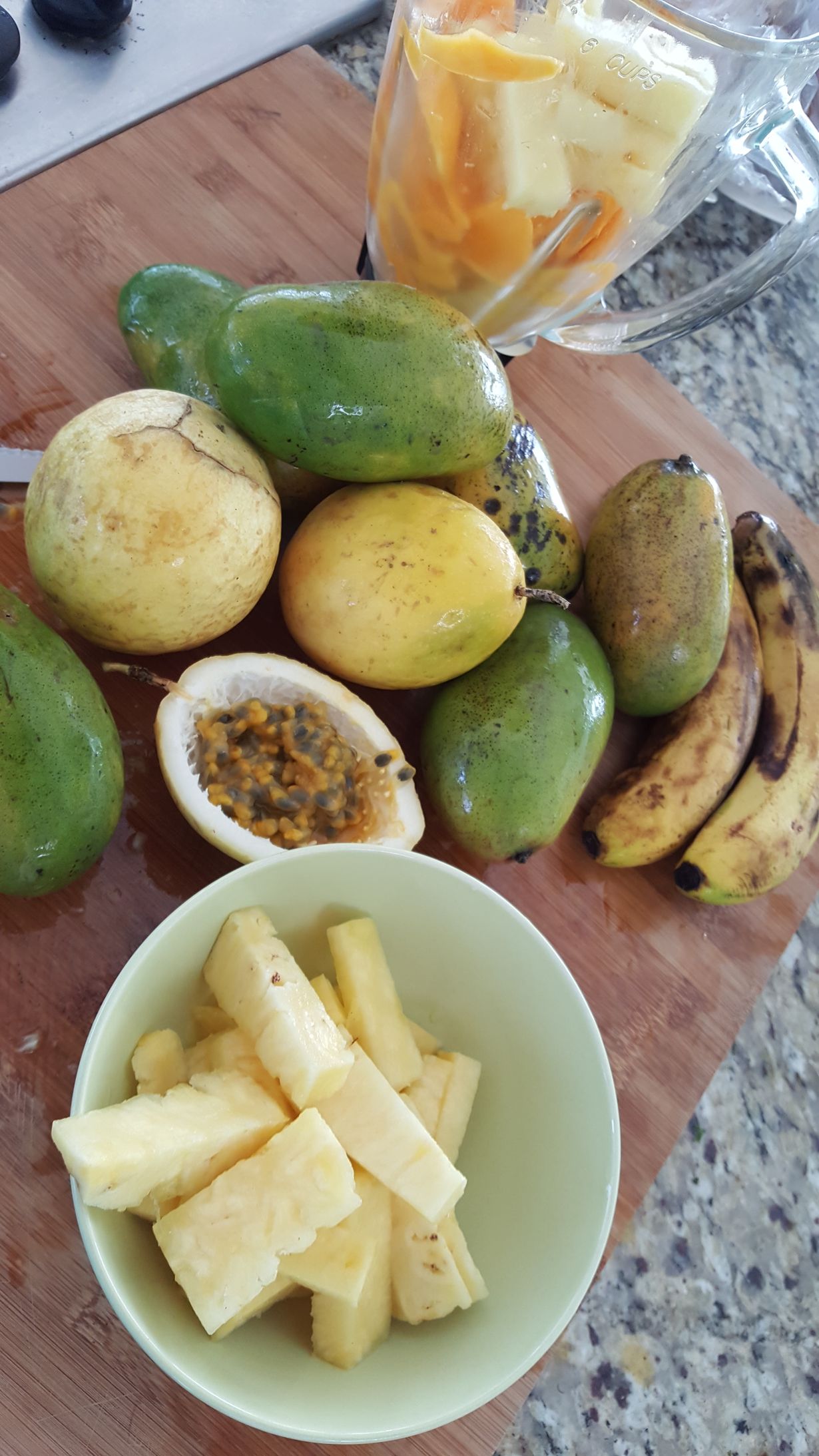 Aamiaistarpeet tyttären anoppilan pihalta kaukana Karibialla. Terkut lämpimästä!